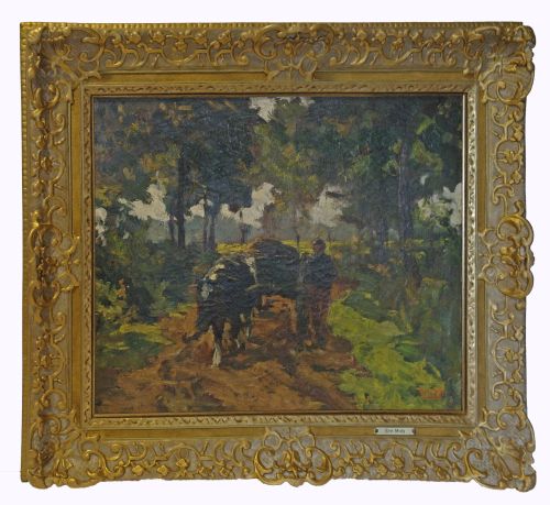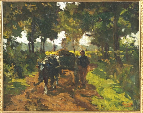 De ossenkar - z.j., olieverf/doek, 45,5 x 56 cm, gesigneerd in rood r.o.: Ern Midy