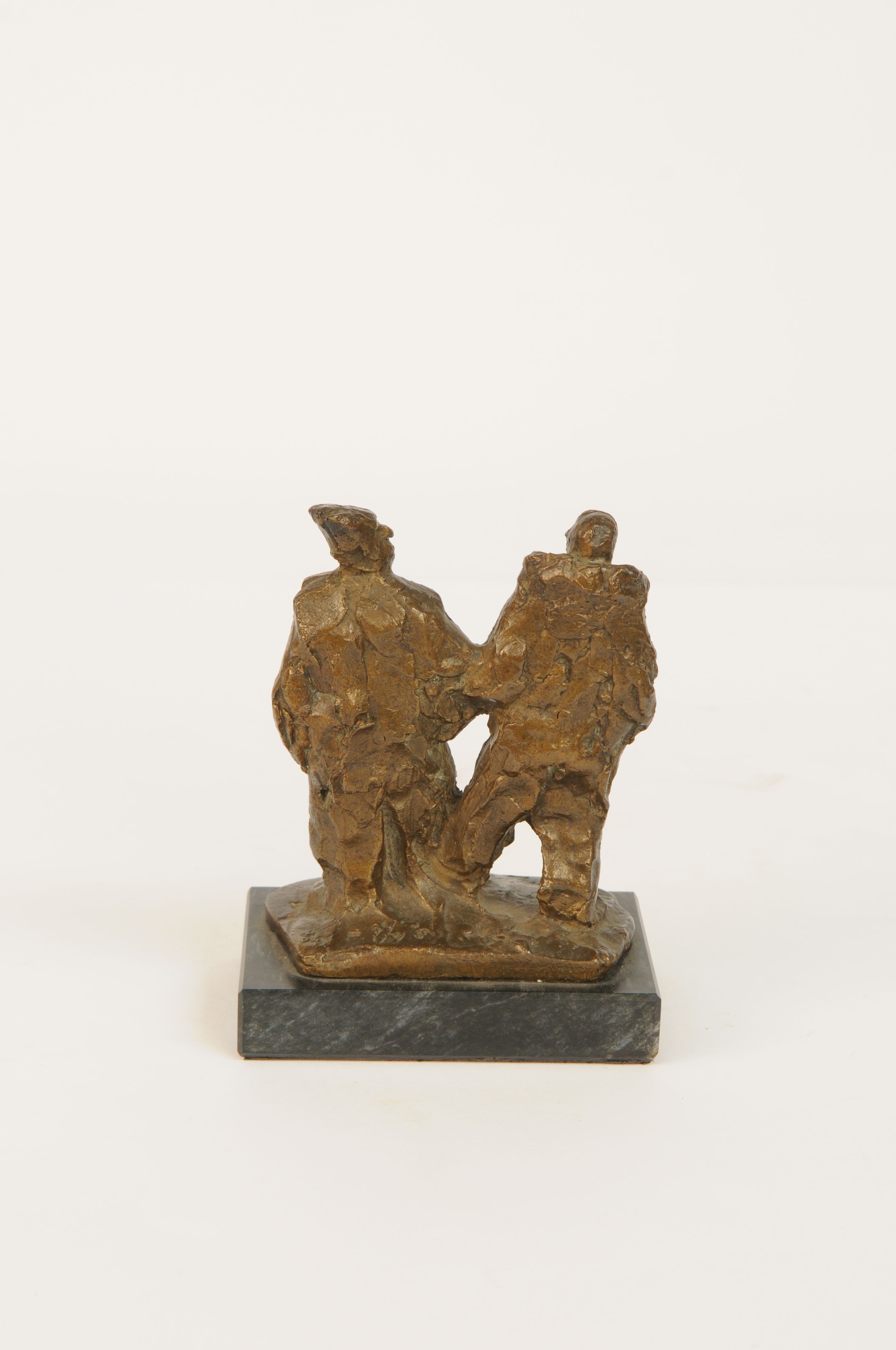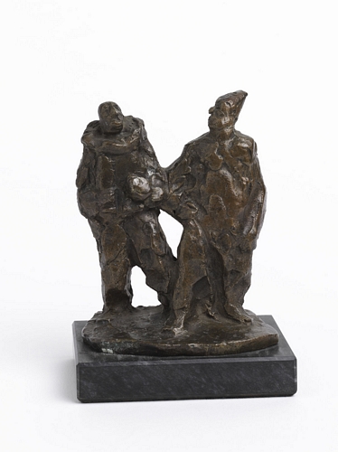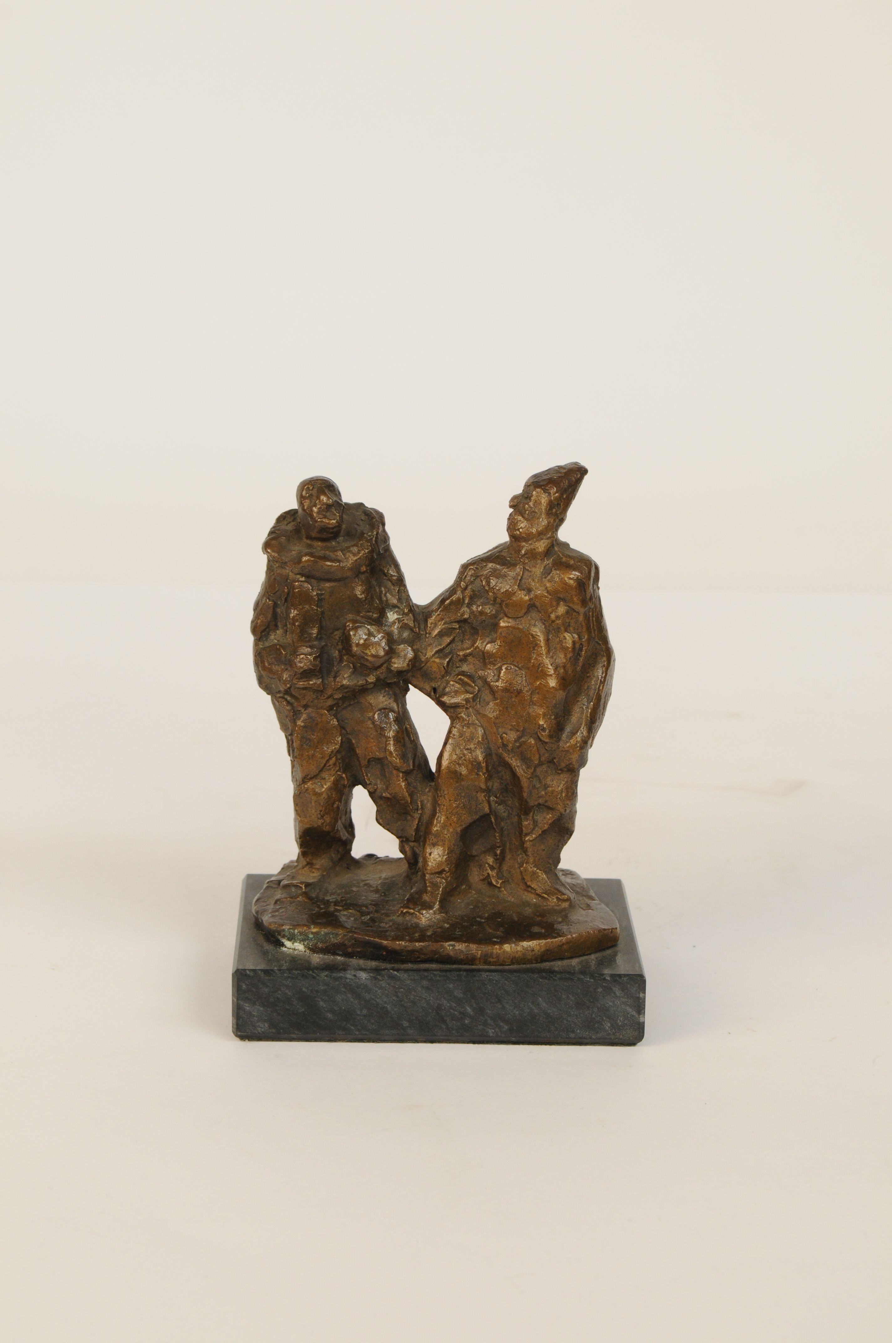 Twee clowns – ca. 1950/60, brons, ongesigneerd, in voet nummer ¼ ‘8, 13,5 x 10,5 x 6,5 cm, op hardstenen sokkel 2 x 12 x 8 cm