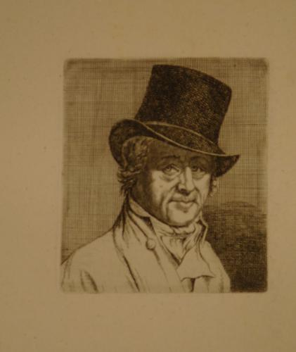 Portret met hoed, gezien bijna en face, lichtelijk naar rechts neigend. De plaat is gesneden. De achtergrond is bedekt met vertikaal en horizontaal gekruiste streepjes gesigneerd r.o.: Bagelaar f H&L (T. Hippert en J. Linnig) Le Peintre-graveur hollandais et belge du 19me siècle, 1879) nr. 7 op achterzijde: geen stempels op één vel samen met 1999.10.11 ...