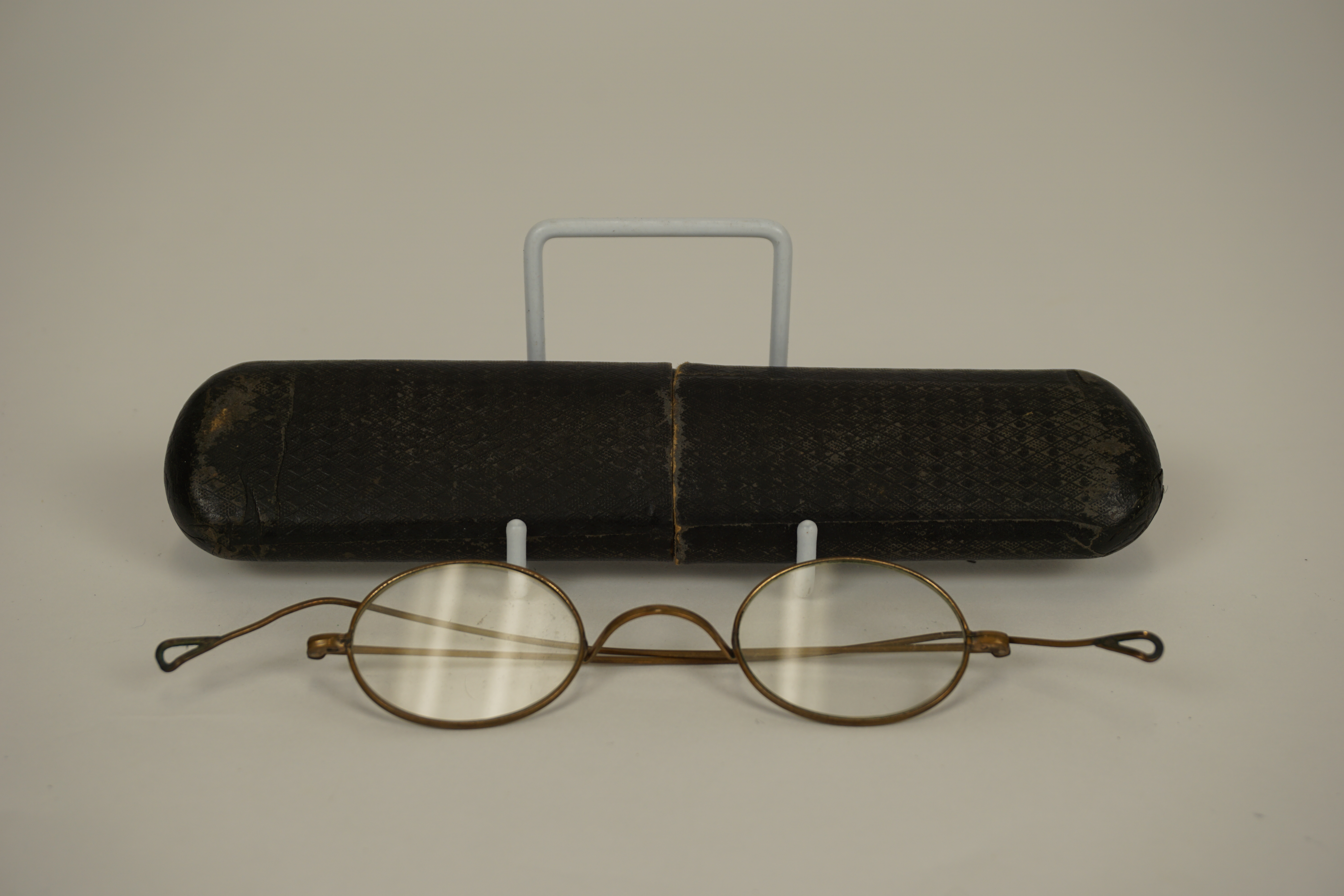 Brillenkoker - 1e t/m 3e kwart van de 20e eeuw, materiaal: karton, afmetingen: 2 x 4 x 17,5 cm, brillenkoker bestaande uit twee over elkaar te schuiven delen