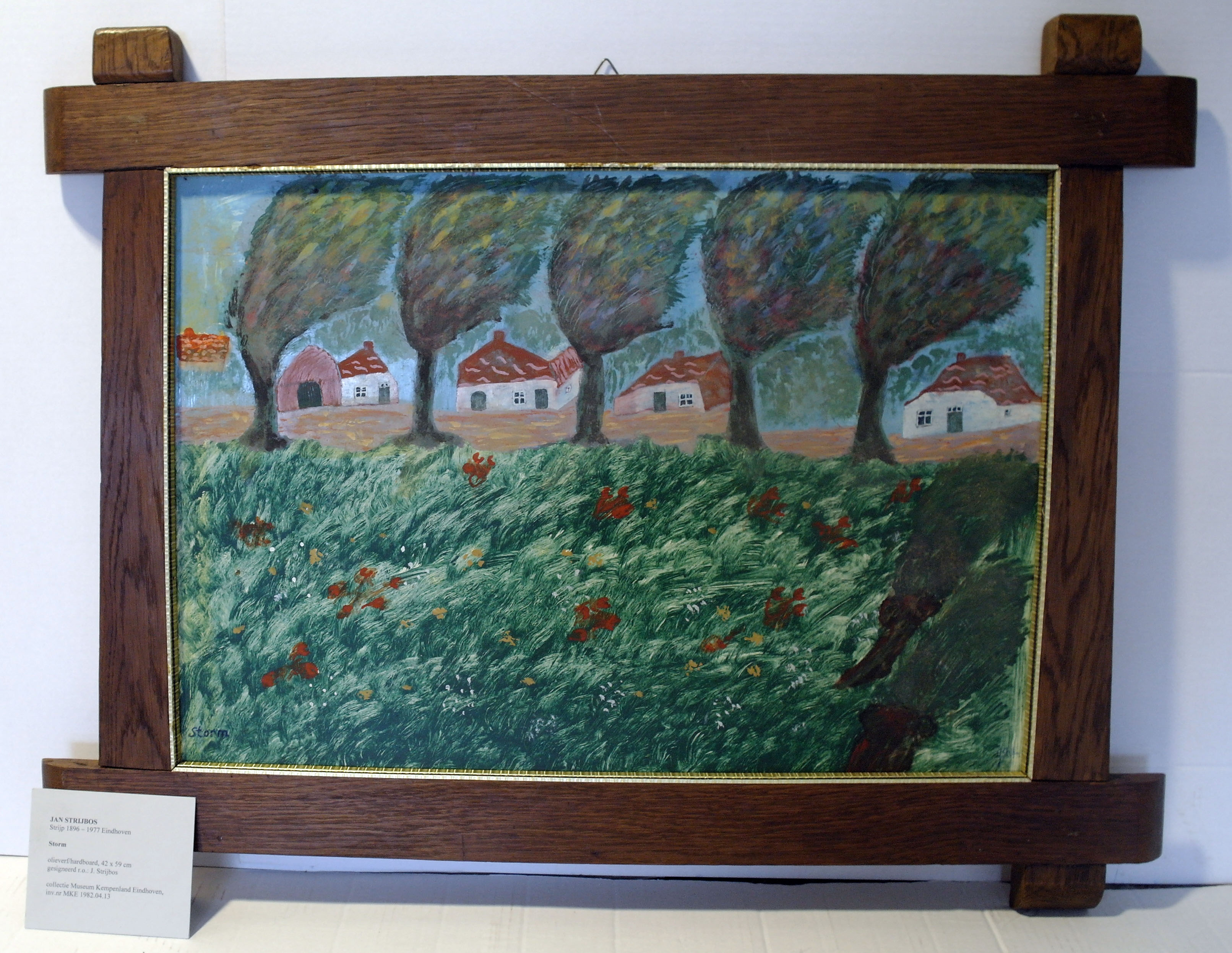 'Storm', olieverf op hardboard, 42 x 59,5 cm, gesigneerd r.o.: J Strijbos, getiteld r.o.: Storm, in houten lijst
