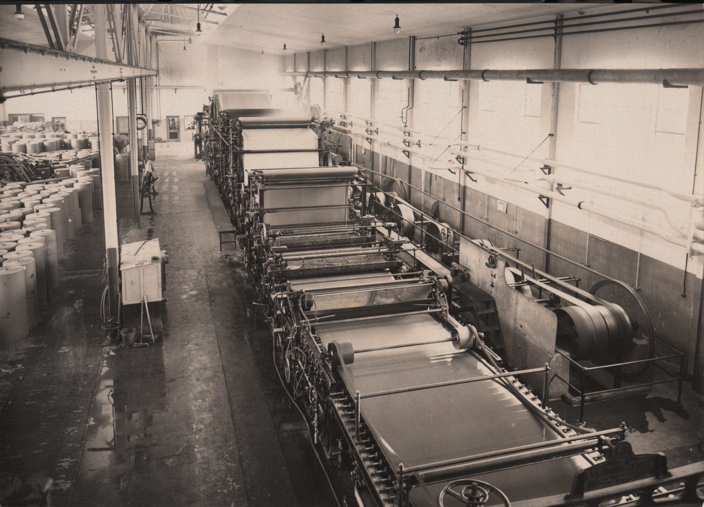 De cartonnagefabriek van Philips aan de hoek Zwaanstraat/Beukenlaan te Eindhoven – Strijp, productie van golfkarton, ca. 1920, zwart-witfoto/papier, 162 x 227 mm, achterop in potlood geschreven de code C 1781
