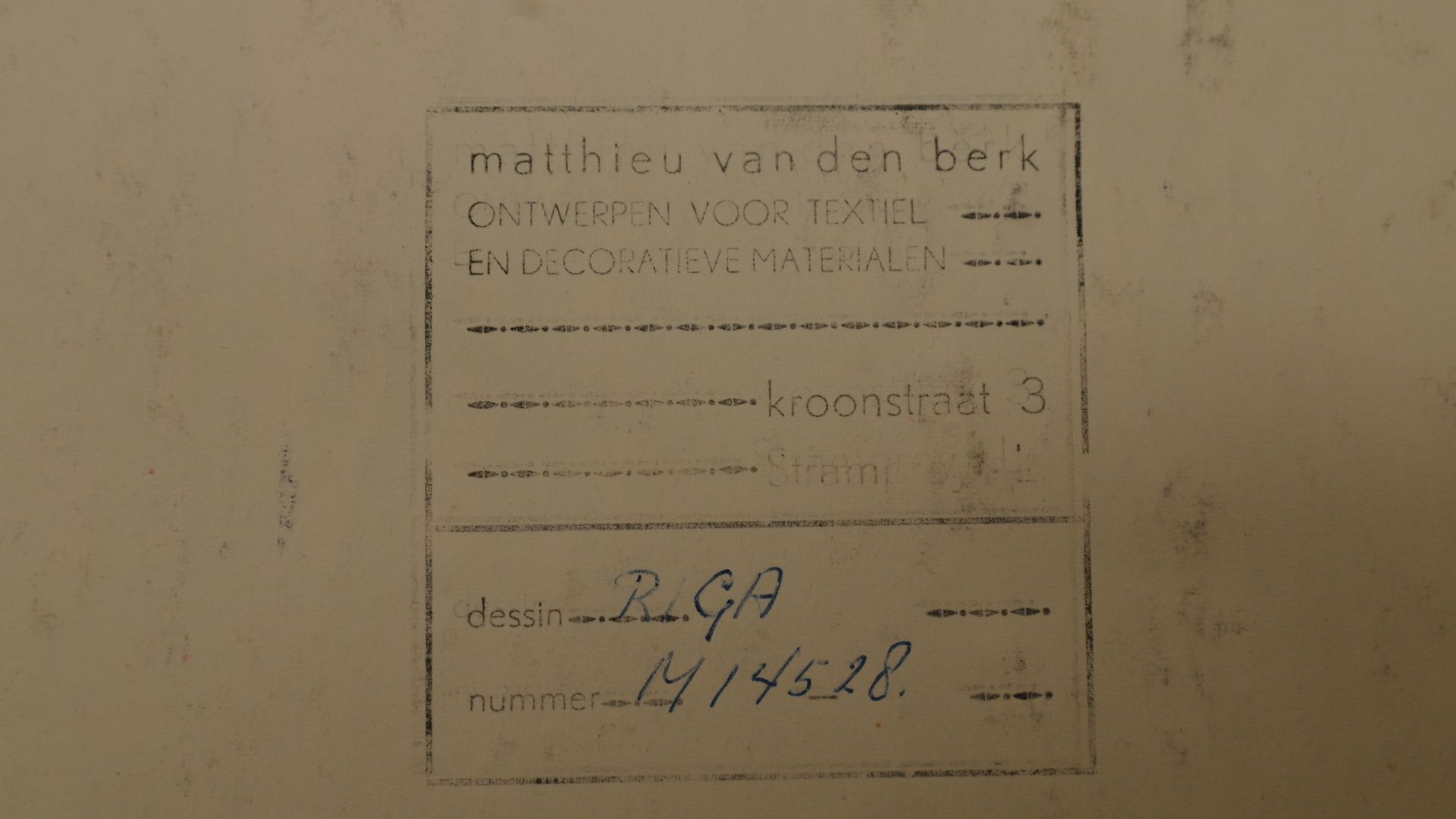 Textiel-ontwerp Riga M 14528, gouache en potlood/papier, 390 x 380 mm