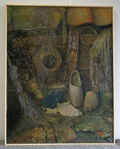 Op het erf – 1948/1981, olieverf/doek, 90 x 70 cm, gesigneerd l.o.: H. JAN SCHOUTEN