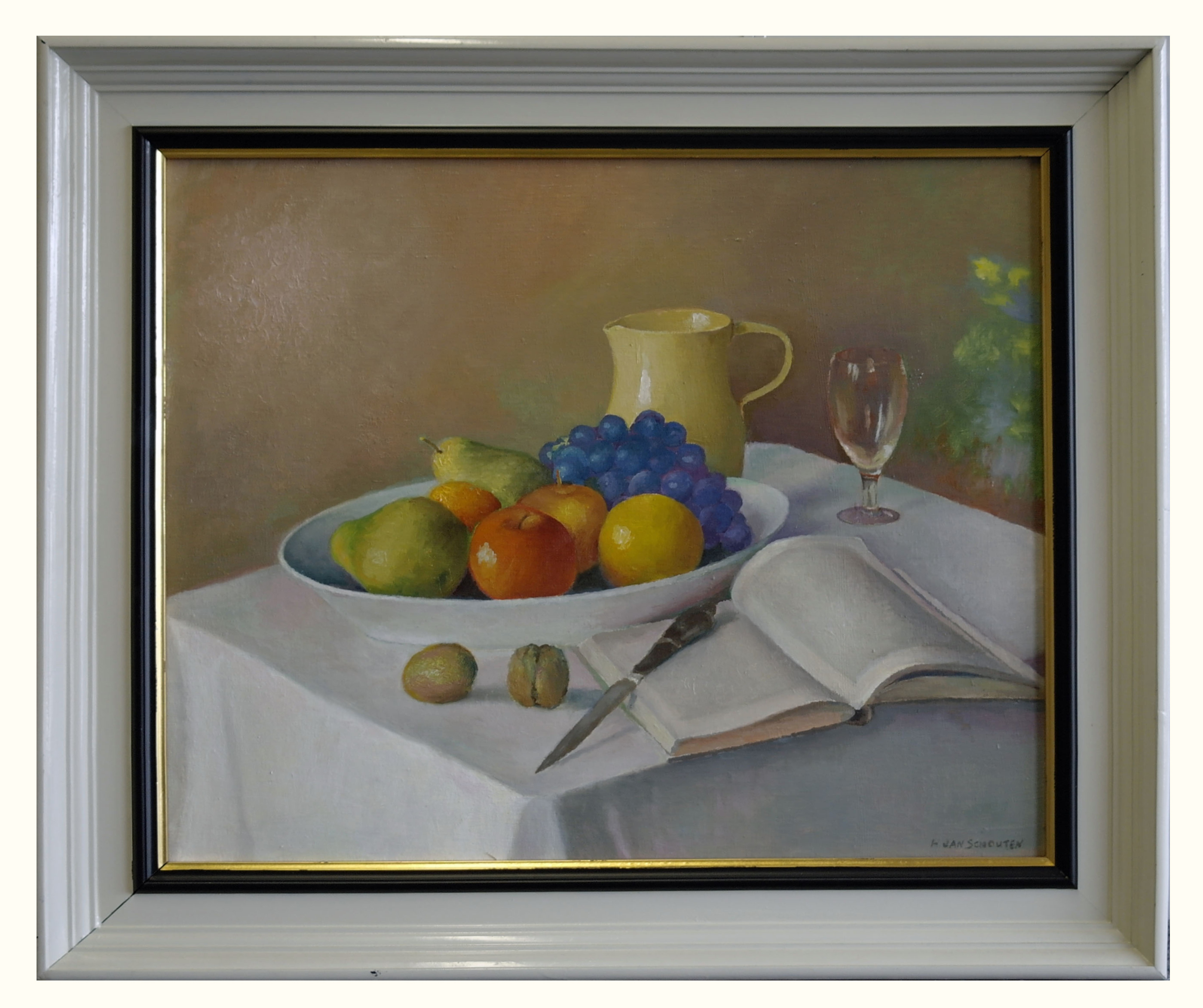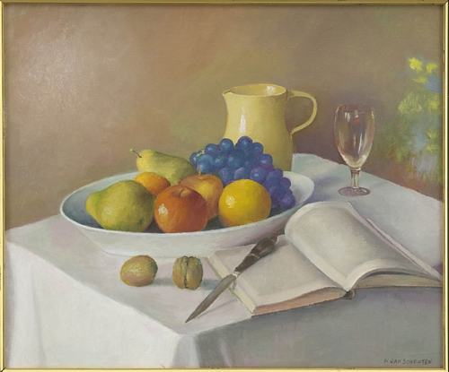 Blauwe druiven – januari 1987, olieverf/doek, 50 x 60 cm, gesigneerd r.o.: H. JAN SCHOUTEN