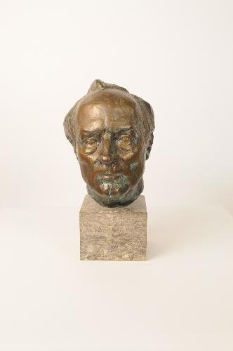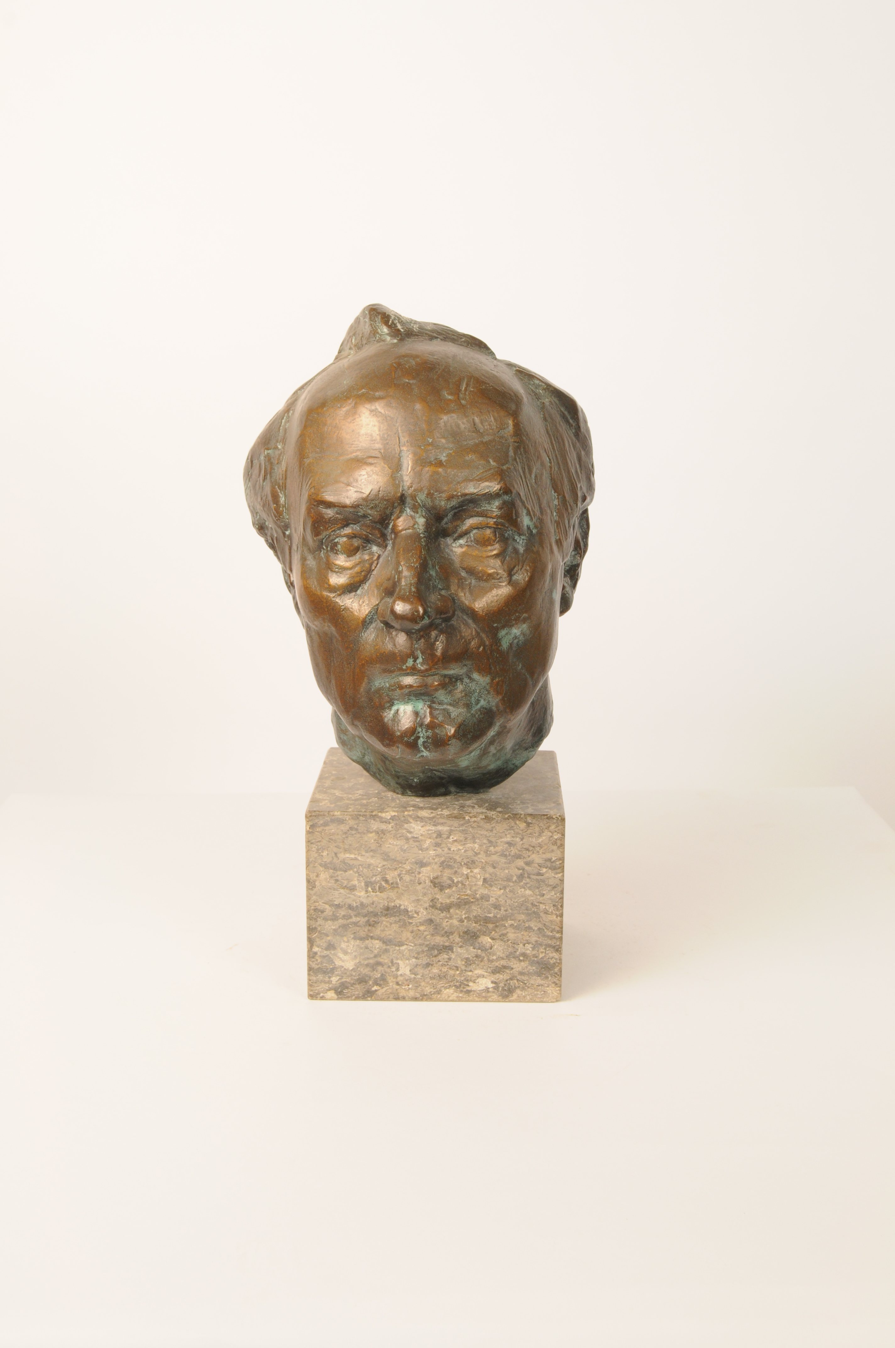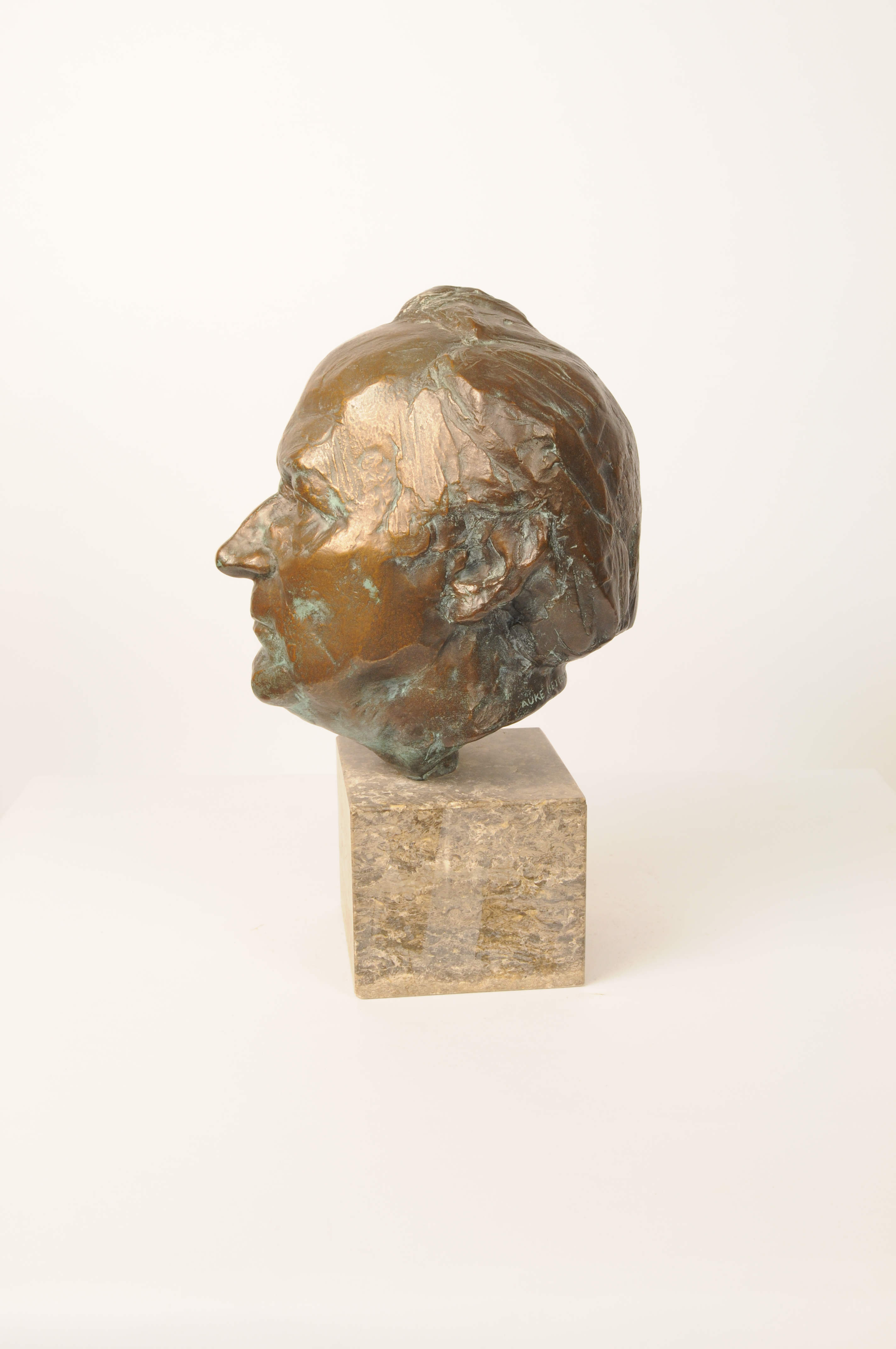 Piet Esser - 1987, materiaal: brons, afmetingen: 30 x 24 x 28 cm, gesigneerd en gedateerd: 'AUKE HETTEMA '87', sokkel: steen, 12 x 16 x 14,5 cm