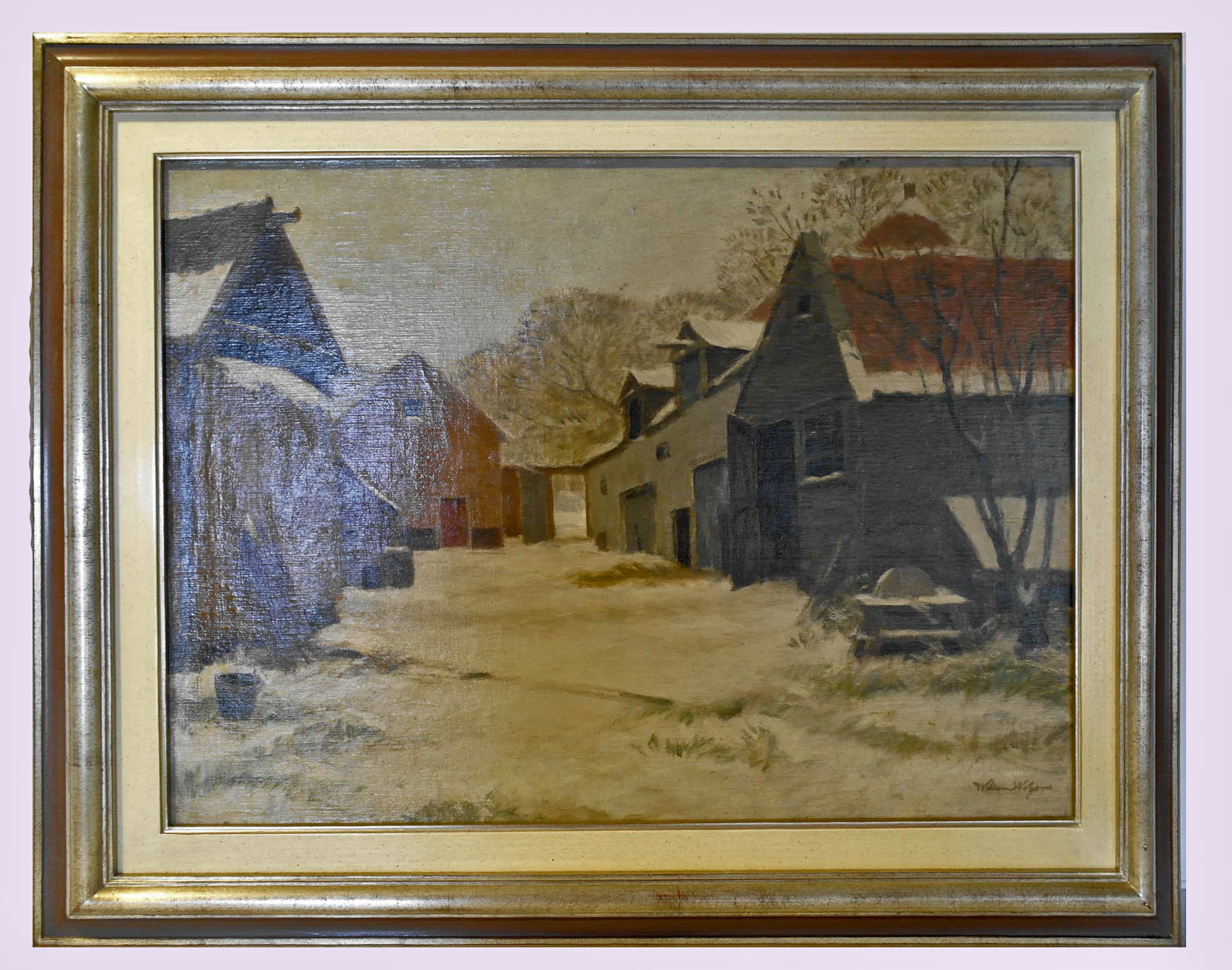 Winters straatje in Nederhemert - z.j., olieverf/doek, 46 x 64 cm, gesigneerd r.o.: Willem Witjens