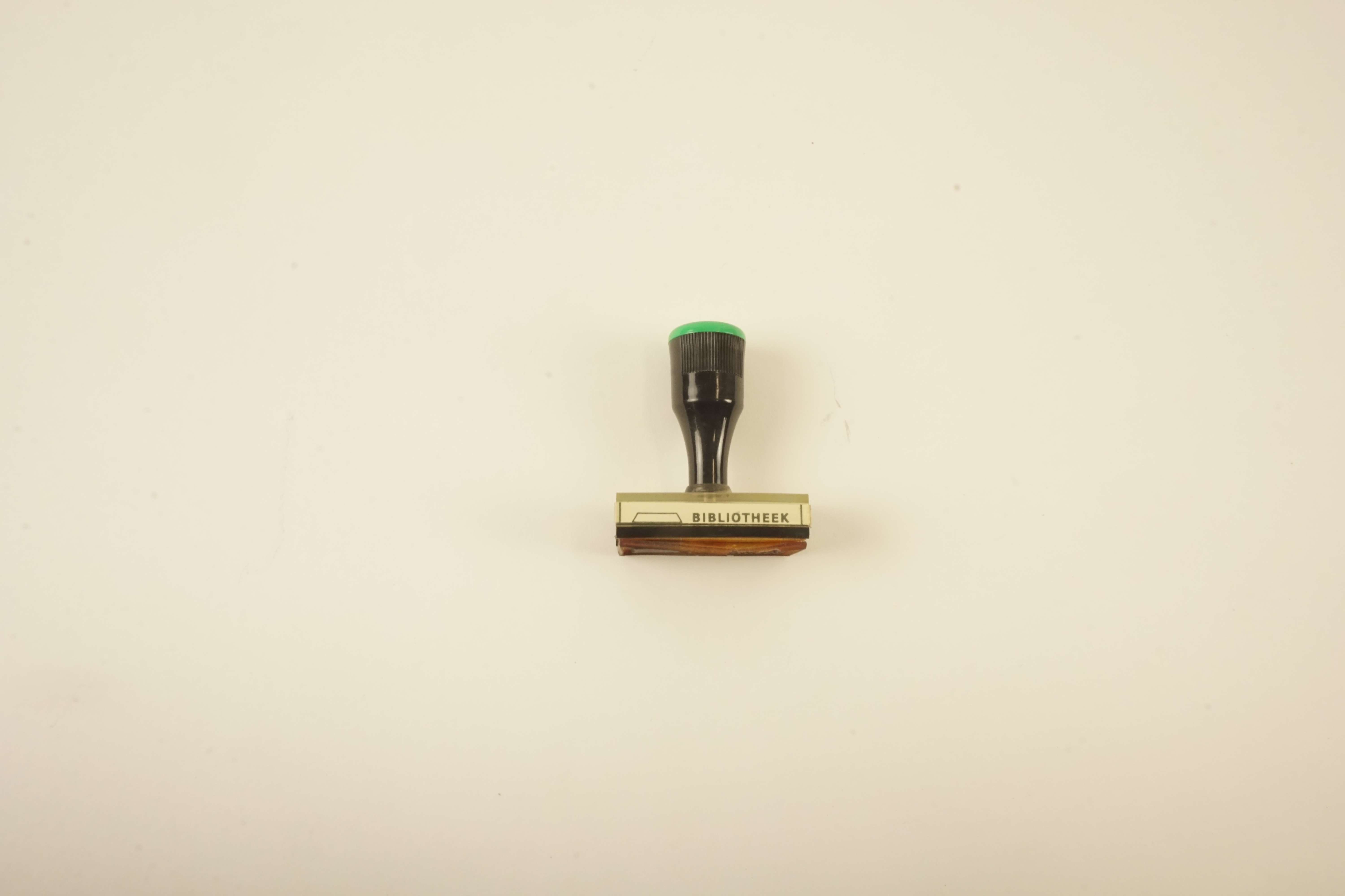 Stempel, houten vatting/rubber stempel, van Museum Kempenland met het oude museumlogo/wapen