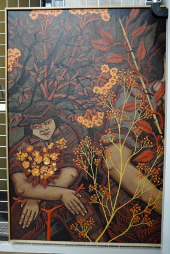 Zonder titel (Twee vrouwen tussen planten) - 1981, acrylverf/doek, 100 x 80 cm, gesigneerd en gedateerd r.b.: león ’81