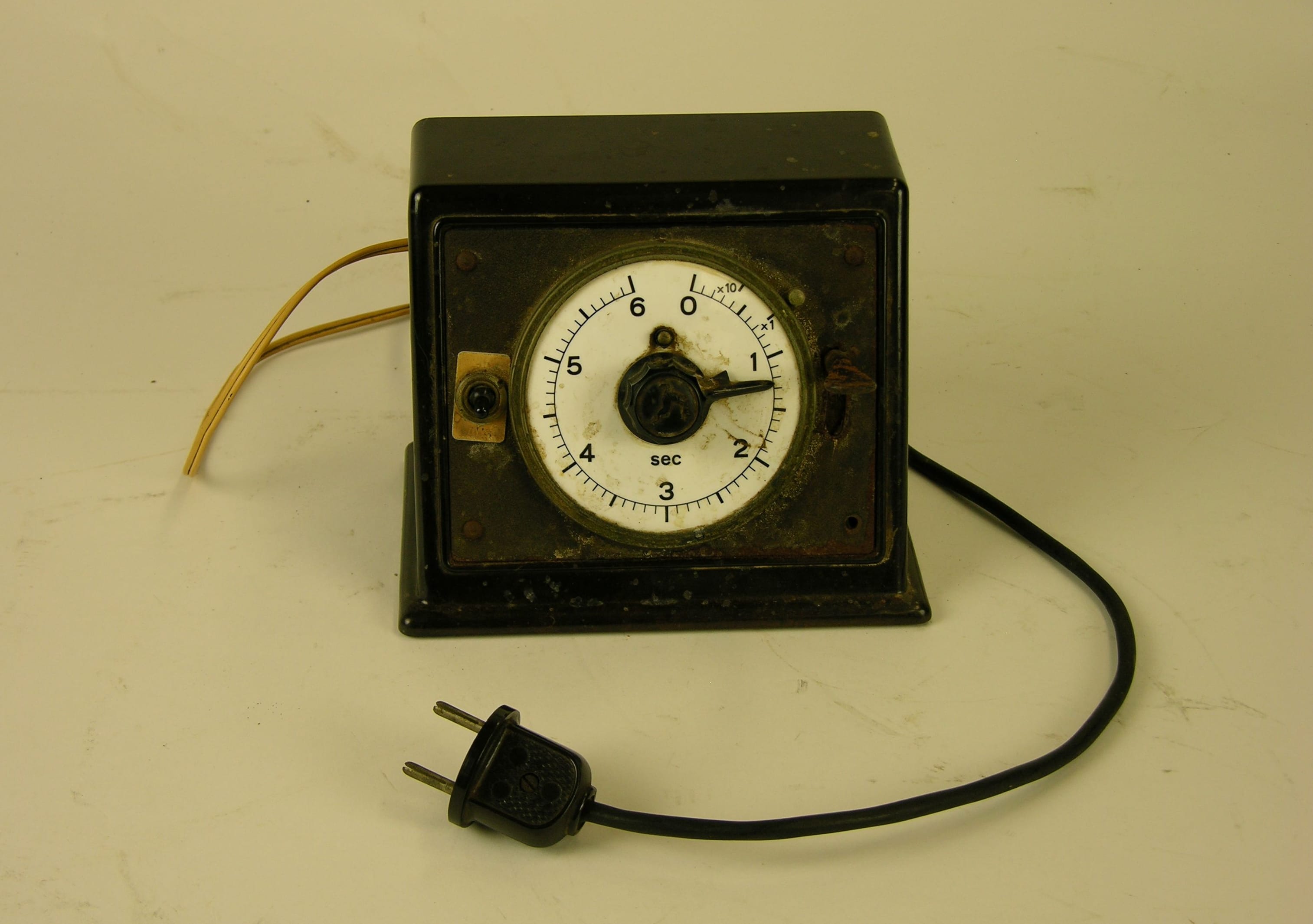 Tijdklok, Bakeliet/metaal, 13 x 17 x 10,5 cm