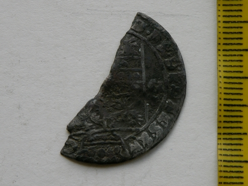 Zes stuiver, materiaal: zilver, diameter: 29 mm, gehalveerd/gebroken Behorend bij vondstnummer EHV-RD-91 TH, Kasteel van Eindhoven (zuidgracht onder Ten Hagestraat, vondsten verzameld op afgevoerde grond langs spoor ten noorden van de Waterkantstraat, augustus 1991 - oktober 1991)