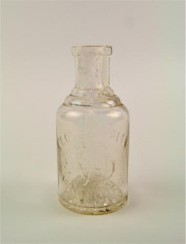 Flesje - 1e t/m 3e kwart van de 20e eeuw, materiaal; glas, afmetingen: 8 x 3,5 cm, flesje met reliëfopschrift: 'GEORG DRALLE HAMBURG', Met kurk afsluitbaar.