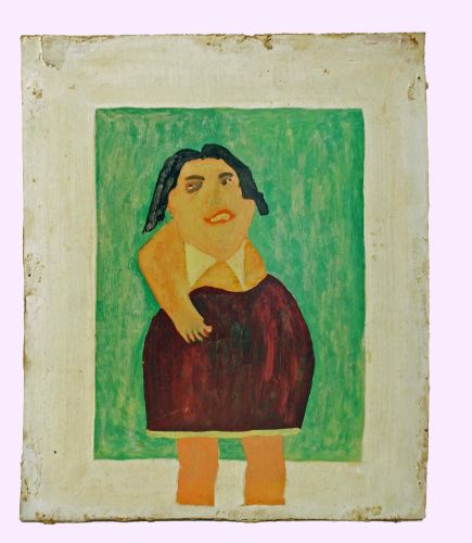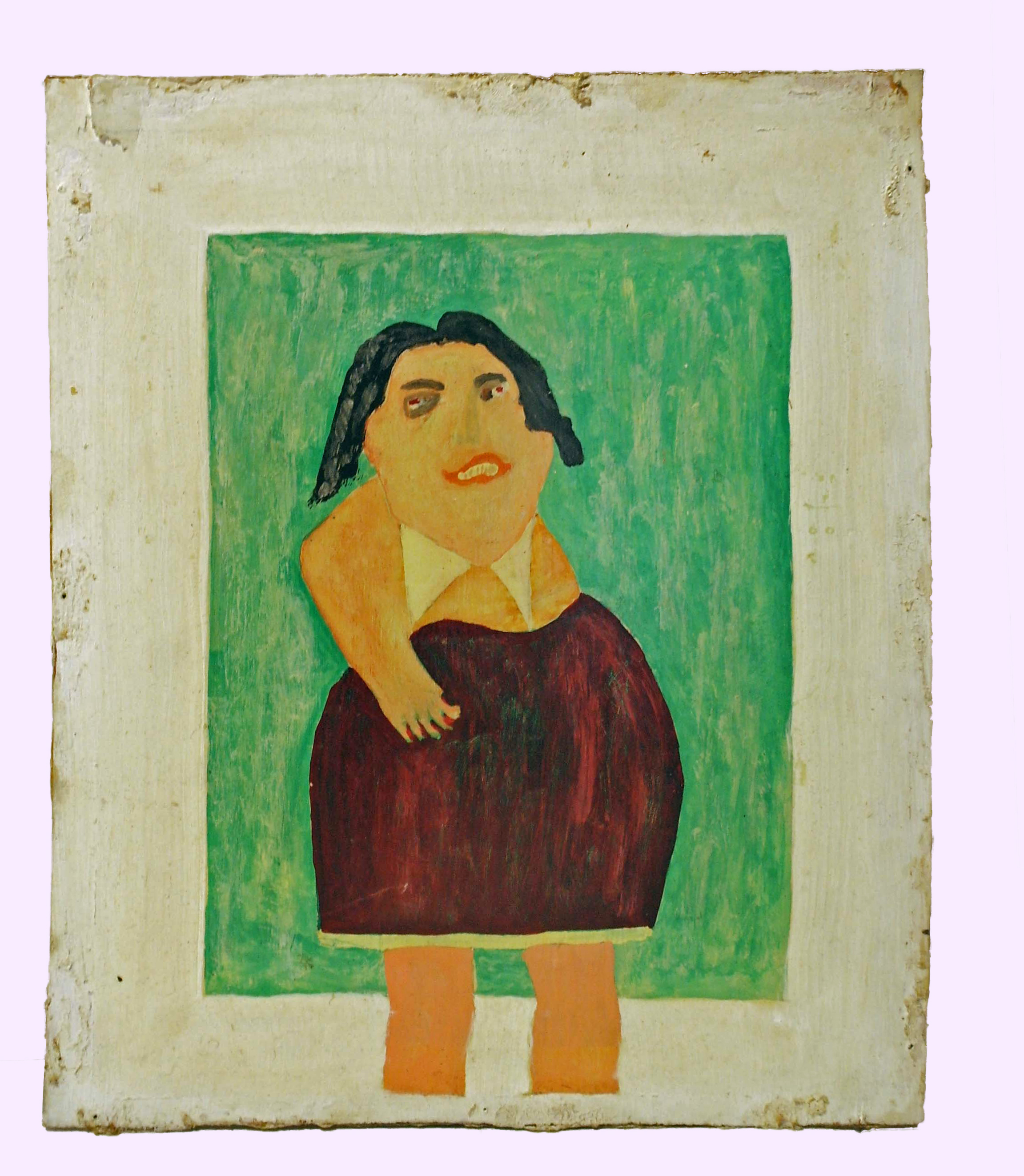 'Vrouw met rode rok', olieverf op triplex, 31,5 x 26,5 cm