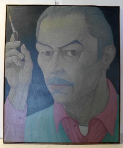 Zelfportret met penseel - 1991, olieverf/doek, 90 x 75 cm, gesigneerd l.b.: L'Herminez 91