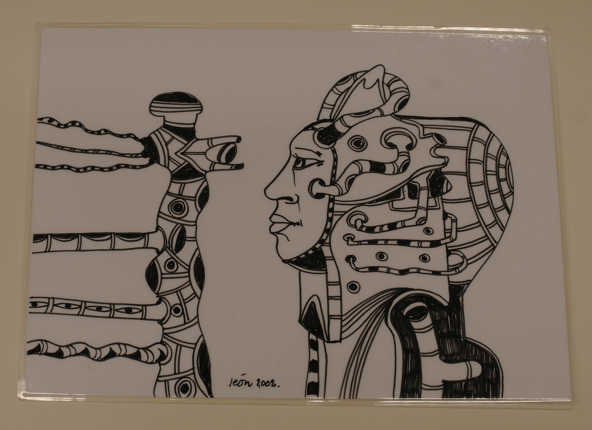 Zonder titel – 2002, pentekening in zwart/papier, 210 x 297 mm, gesigneerd en gedateerd m.o.: león 2002