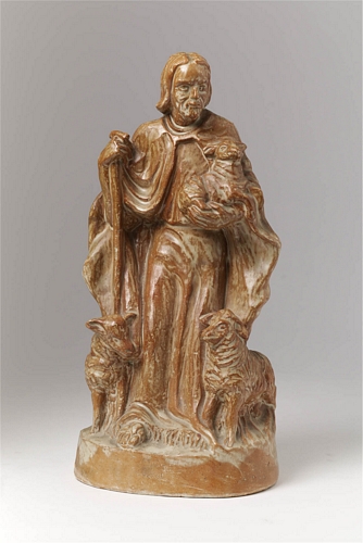 Goede Herder, geglazuurde terracotta, gesigneerd aan onderzijde rand: PETRI.