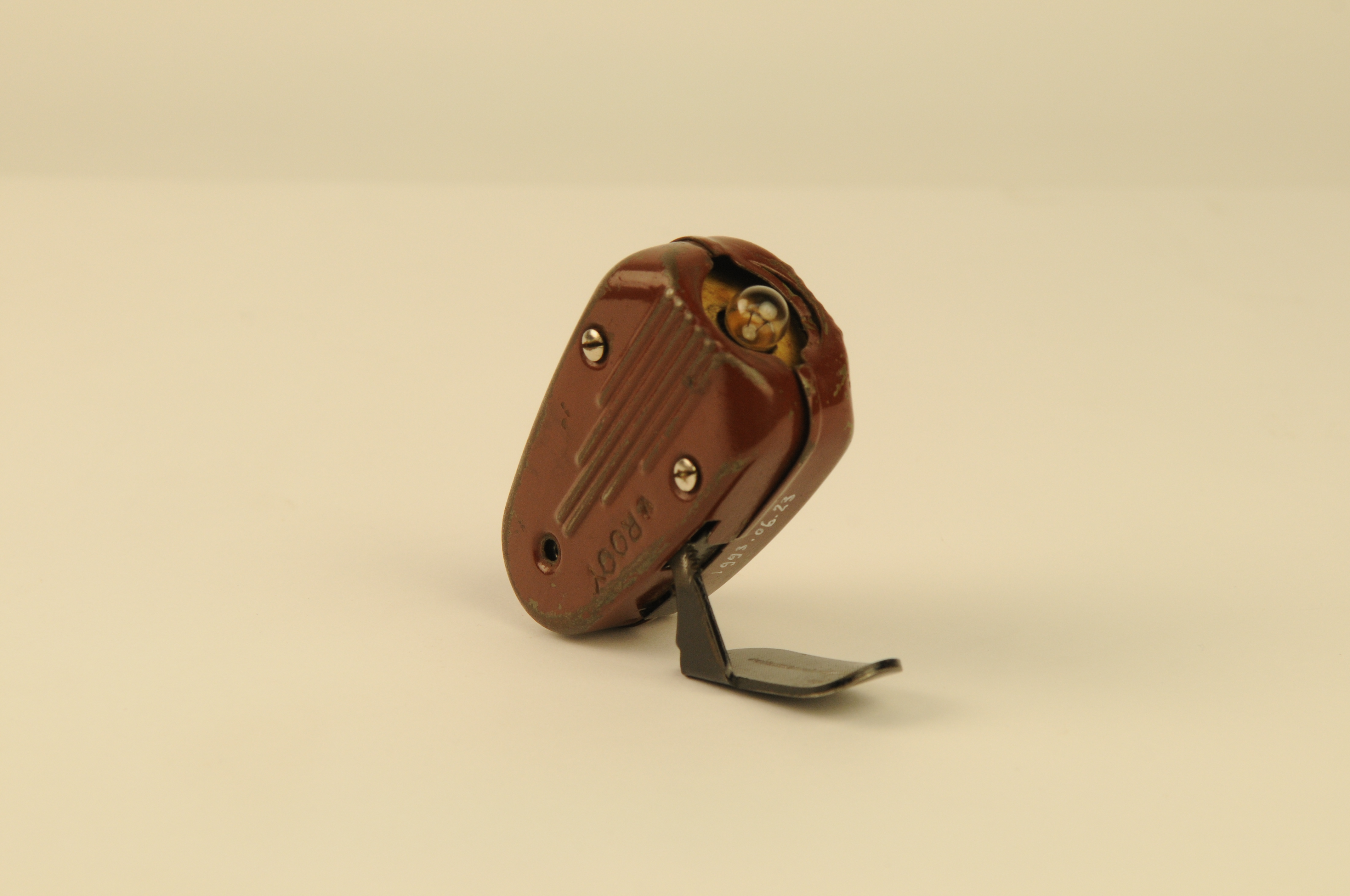 knijpkat met opschrift: V. ROOY MADE IN HOLLAND TYPE 7424-03 2,5 volt 0,1 A