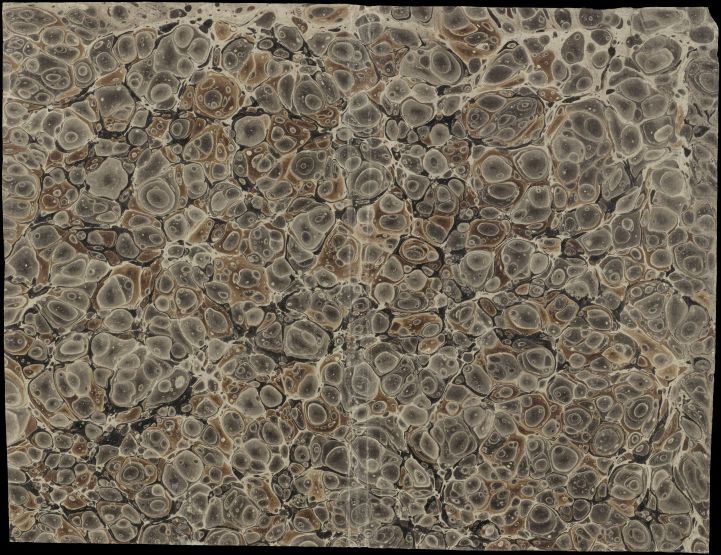Blad met marmer in schelppatroon, in grijs, bruin en zwart, oud boekomslag