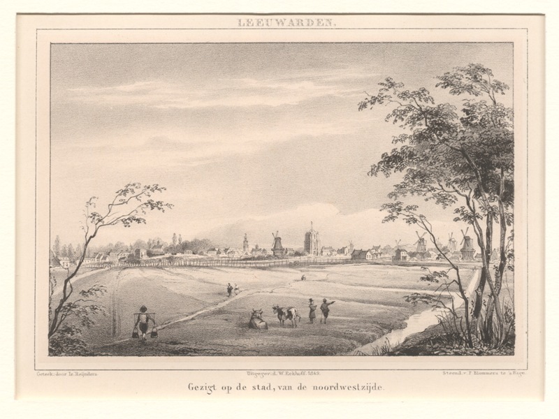 Gezicht op de stad Leeuwarden van de noordwestzijde
