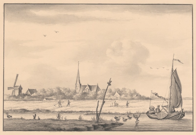 Gezicht op het dorp Bergum in Tietjerksteradeel vanf het meer