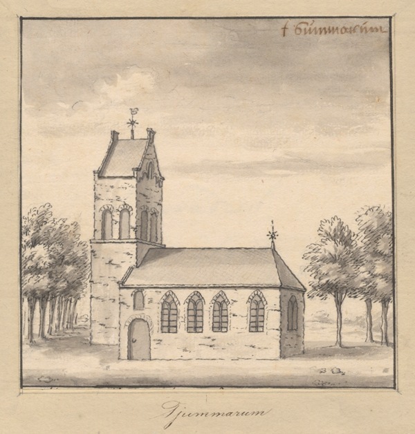 Gezicht op de kerk te Tzummarum