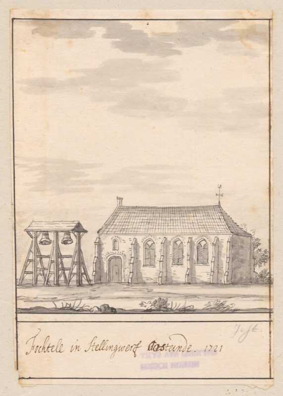 Gezicht op de kerk met klokstelling te Fochteloo in Oost-Stellingwerf