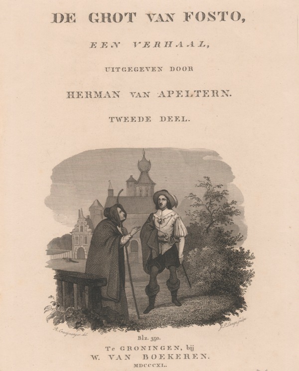 Gezicht op het Slot Camminga te Ballum op Ameland op titelblad 'De grot van Fosto'