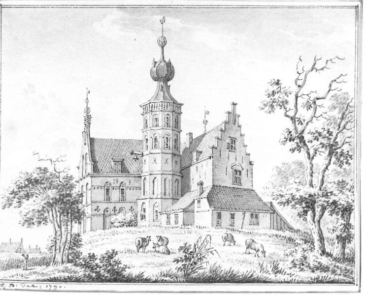 Gezicht op het Camminga Slot te Ballum op Ameland