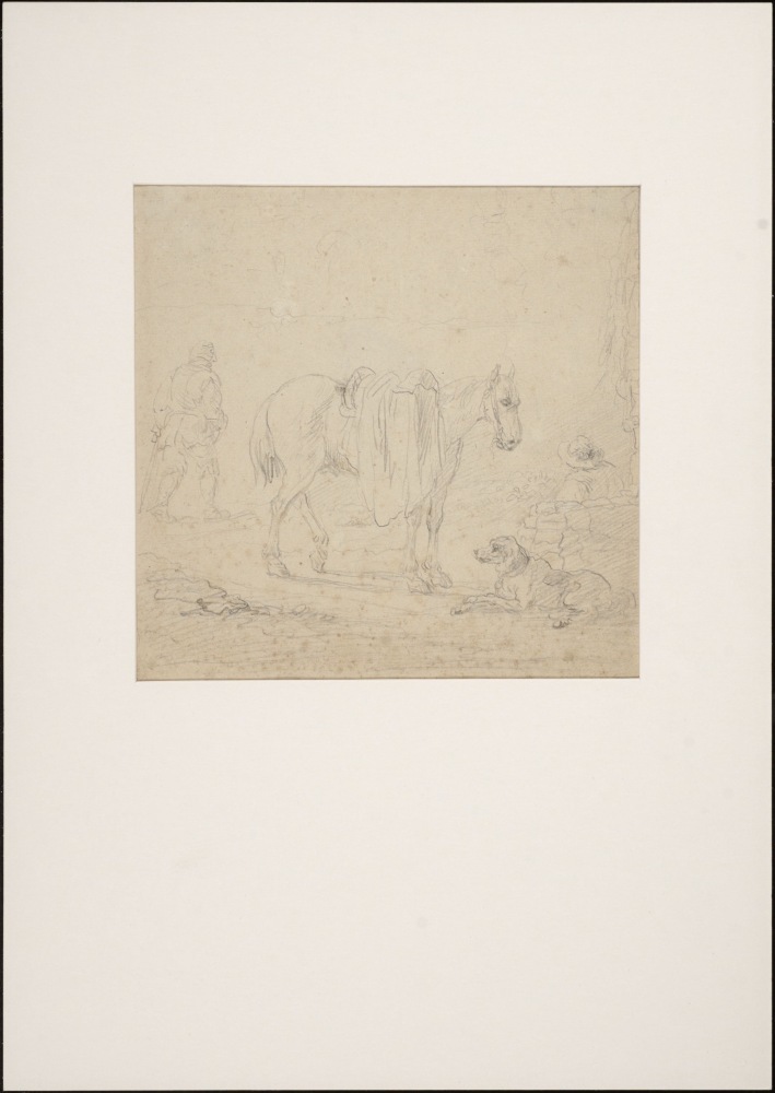 Schets van een paard, een hond en twee mannen