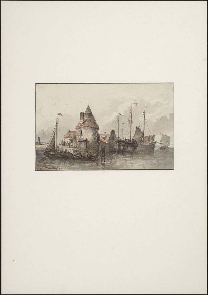 Riviergezicht met schepen