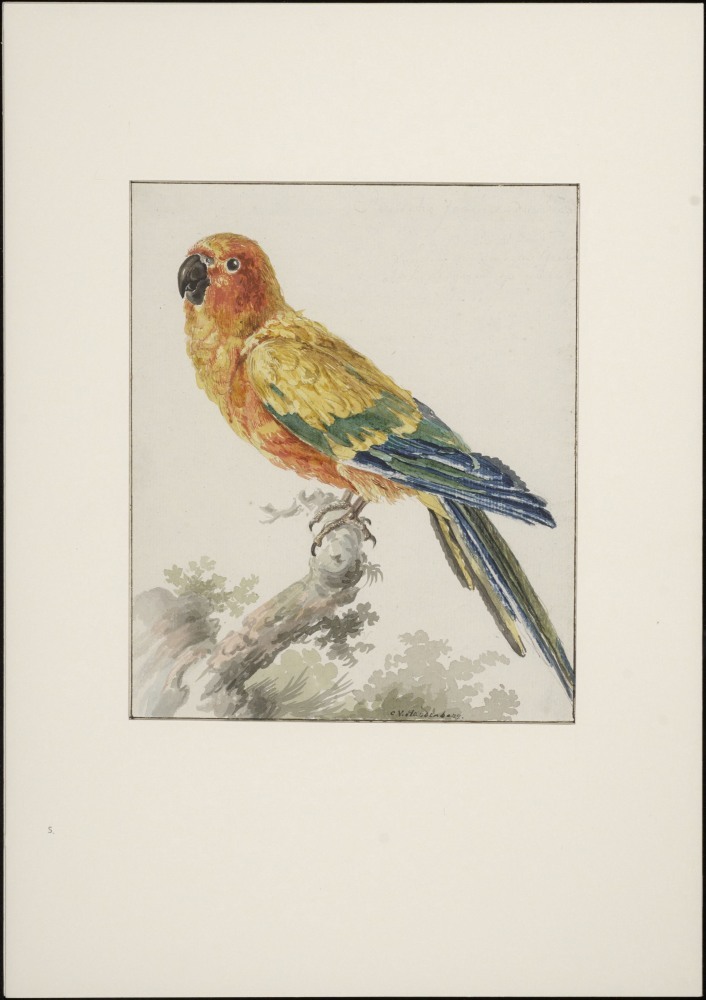Papagaai op boomstronk