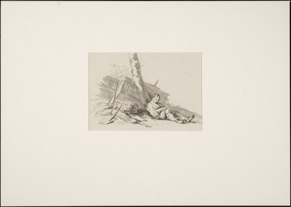 Slapende jongen onder boom