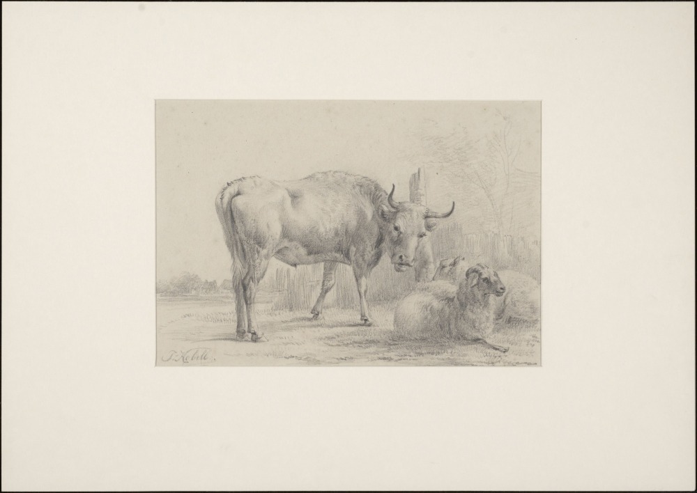 Landschap met koe en schapen