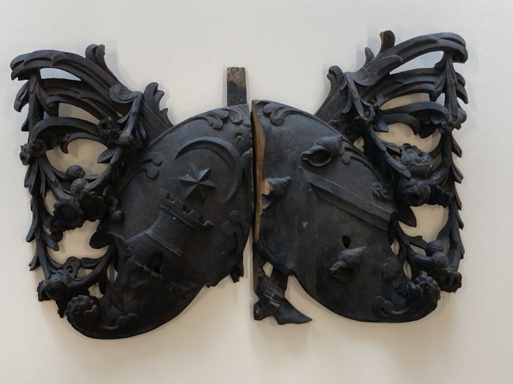 1. Bord (plateel, tin) met de afbeelding van een wapen. 2. Paneel waarop een of meer wapens met hun attributen zijn afgebeeld, van een of meer gestorvenen. Kon voor de kist uit worden gedragen en kreeg daarna een plaats aan de kerkmuur. Voor de reformatie gebruik van de adel, daarna overgenomen door de burgerij, maar nam af of verdween plaatselijk geheel.