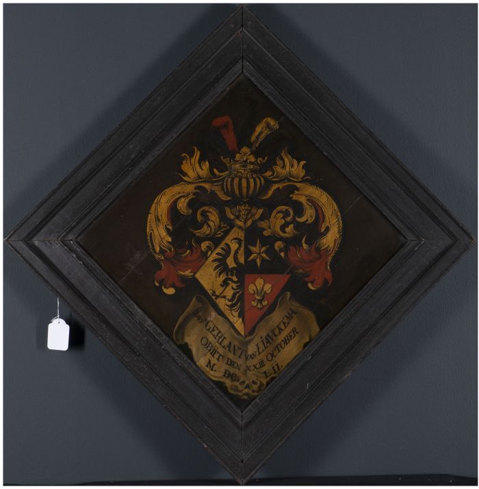 1. Bord (plateel, tin) met de afbeelding van een wapen. 2. Paneel waarop een of meer wapens met hun attributen zijn afgebeeld, van een of meer gestorvenen. Kon voor de kist uit worden gedragen en kreeg daarna een plaats aan de kerkmuur. Voor de reformatie gebruik van de adel, daarna overgenomen door de burgerij, maar nam af of verdween plaatselijk geheel. https://data.cultureelerfgoed.nl/term/id/cht/96227be1-0854-484e-b618-0b156967507a