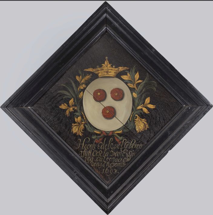 1. Bord (plateel, tin) met de afbeelding van een wapen. 2. Paneel waarop een of meer wapens met hun attributen zijn afgebeeld, van een of meer gestorvenen. Kon voor de kist uit worden gedragen en kreeg daarna een plaats aan de kerkmuur. Voor de reformatie gebruik van de adel, daarna overgenomen door de burgerij, maar nam af of verdween plaatselijk geheel. https://data.cultureelerfgoed.nl/term/id/cht/96227be1-0854-484e-b618-0b156967507a