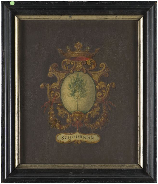 1. Bord (plateel, tin) met de afbeelding van een wapen. 2. Paneel waarop een of meer wapens met hun attributen zijn afgebeeld, van een of meer gestorvenen. Kon voor de kist uit worden gedragen en kreeg daarna een plaats aan de kerkmuur. Voor de reformatie gebruik van de adel, daarna overgenomen door de burgerij, maar nam af of verdween plaatselijk geheel. https://data.cultureelerfgoed.nl/term/id/cht/96227be1-0854-484e-b618-0b156967507a