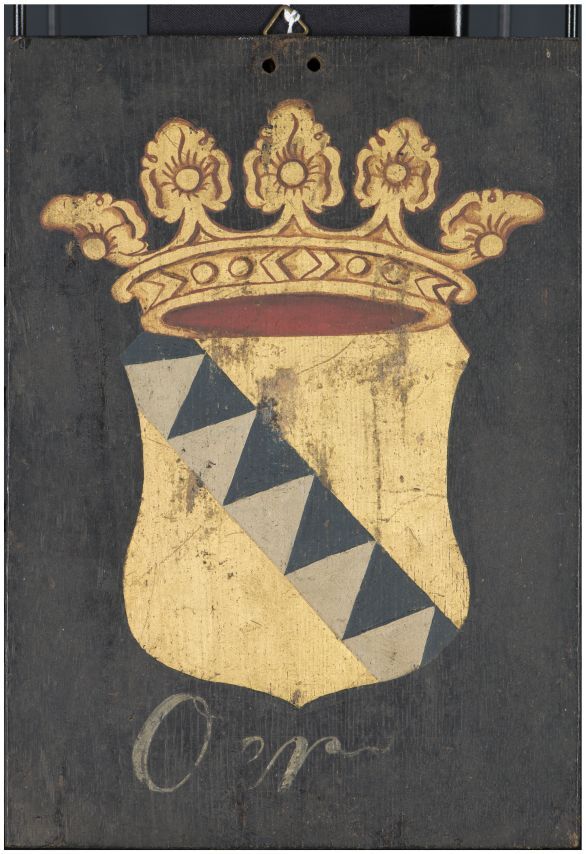 1. Bord (plateel, tin) met de afbeelding van een wapen. 2. Paneel waarop een of meer wapens met hun attributen zijn afgebeeld, van een of meer gestorvenen. Kon voor de kist uit worden gedragen en kreeg daarna een plaats aan de kerkmuur. Voor de reformatie gebruik van de adel, daarna overgenomen door de burgerij, maar nam af of verdween plaatselijk geheel. https://data.cultureelerfgoed.nl/term/id/cht/96227be1-0854-484e-b618-0b156967507a