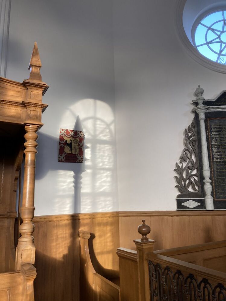 1. Bord (plateel, tin) met de afbeelding van een wapen. 2. Paneel waarop een of meer wapens met hun attributen zijn afgebeeld, van een of meer gestorvenen. Kon voor de kist uit worden gedragen en kreeg daarna een plaats aan de kerkmuur. Voor de reformatie gebruik van de adel, daarna overgenomen door de burgerij, maar nam af of verdween plaatselijk geheel. https://data.cultureelerfgoed.nl/term/id/cht/96227be1-0854-484e-b618-0b156967507a