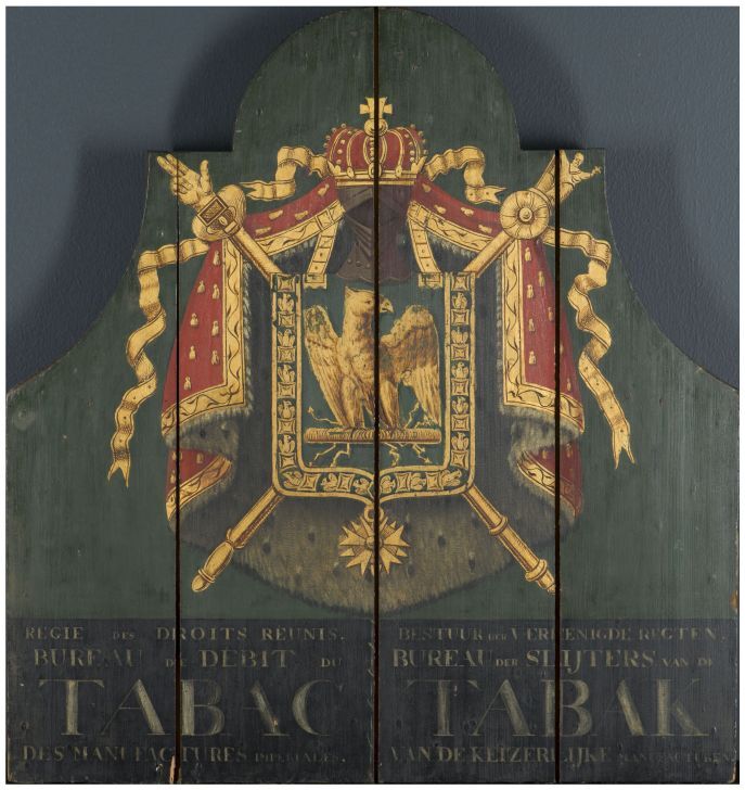 Bord met keizerlijk wapen van het bureau van de tabaksaccijns