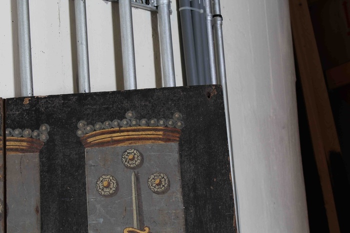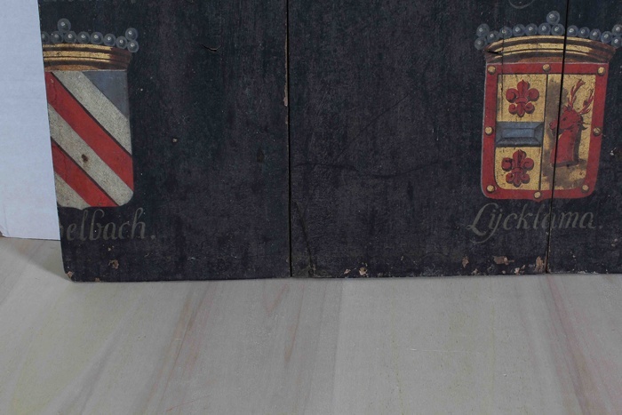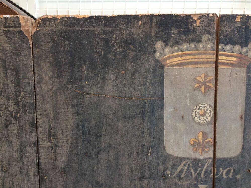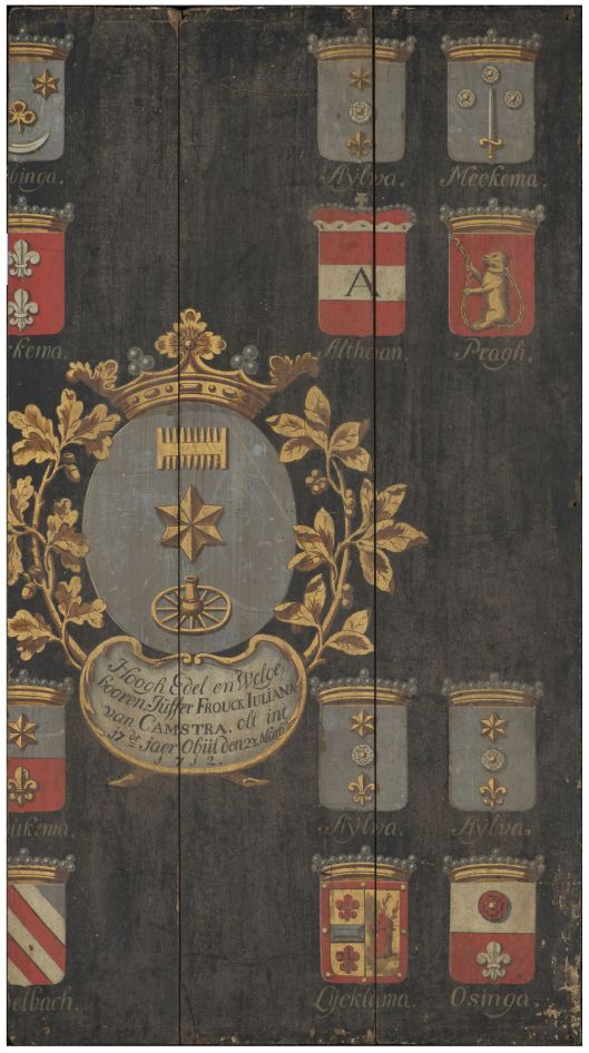 1. Bord (plateel, tin) met de afbeelding van een wapen. 2. Paneel waarop een of meer wapens met hun attributen zijn afgebeeld, van een of meer gestorvenen. Kon voor de kist uit worden gedragen en kreeg daarna een plaats aan de kerkmuur. Voor de reformatie gebruik van de adel, daarna overgenomen door de burgerij, maar nam af of verdween plaatselijk geheel.