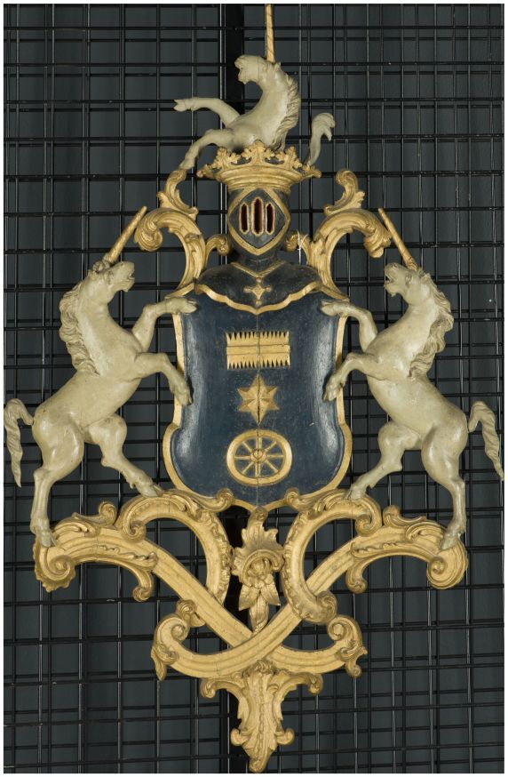 1. Bord (plateel, tin) met de afbeelding van een wapen. 2. Paneel waarop een of meer wapens met hun attributen zijn afgebeeld, van een of meer gestorvenen. Kon voor de kist uit worden gedragen en kreeg daarna een plaats aan de kerkmuur. Voor de reformatie gebruik van de adel, daarna overgenomen door de burgerij, maar nam af of verdween plaatselijk geheel. https://data.cultureelerfgoed.nl/term/id/cht/96227be1-0854-484e-b618-0b156967507a