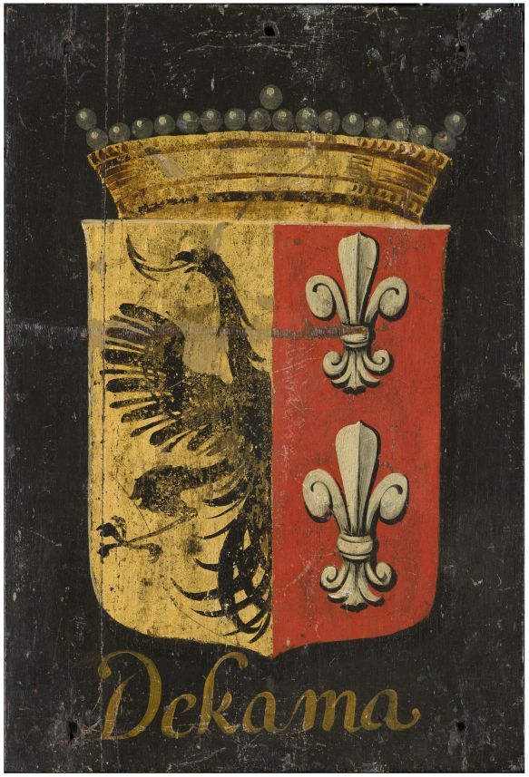 1. Bord (plateel, tin) met de afbeelding van een wapen. 2. Paneel waarop een of meer wapens met hun attributen zijn afgebeeld, van een of meer gestorvenen. Kon voor de kist uit worden gedragen en kreeg daarna een plaats aan de kerkmuur. Voor de reformatie gebruik van de adel, daarna overgenomen door de burgerij, maar nam af of verdween plaatselijk geheel. https://data.cultureelerfgoed.nl/term/id/cht/96227be1-0854-484e-b618-0b156967507a