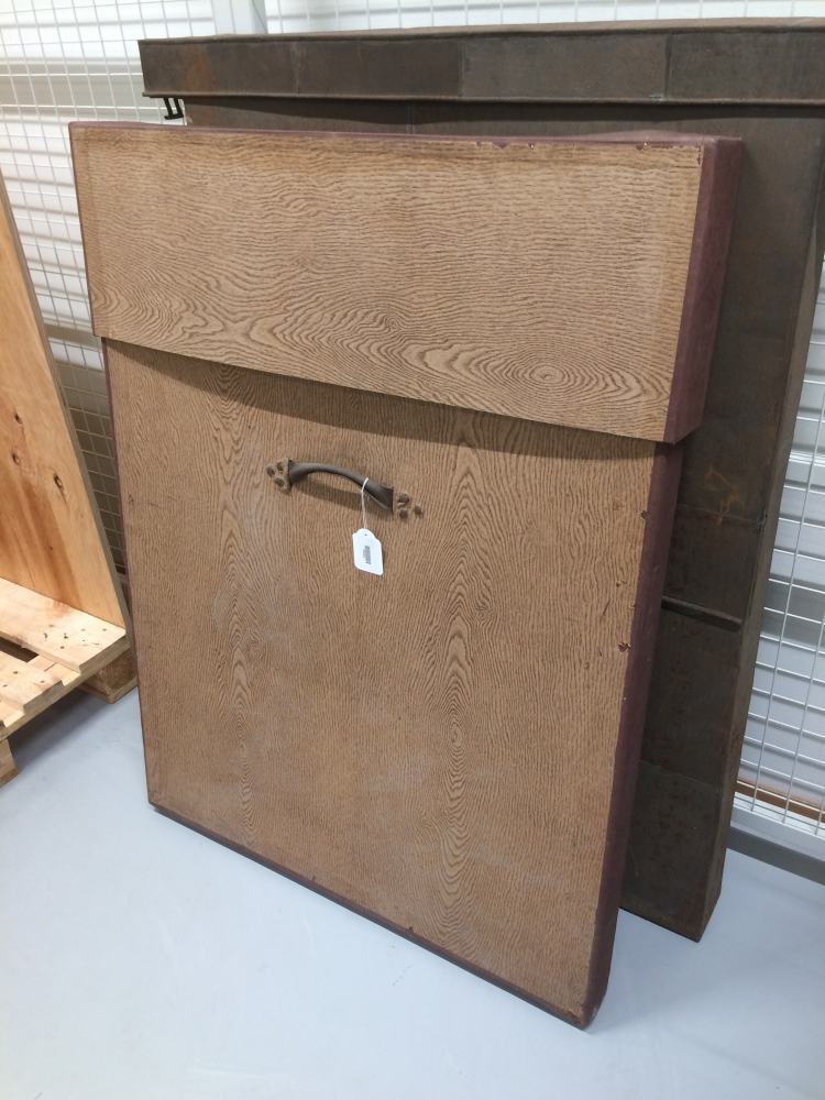 Bordpapieren foudraal met leren hengsel, behorende bij vaandel van blauw fluweel met gouddraad bestikt