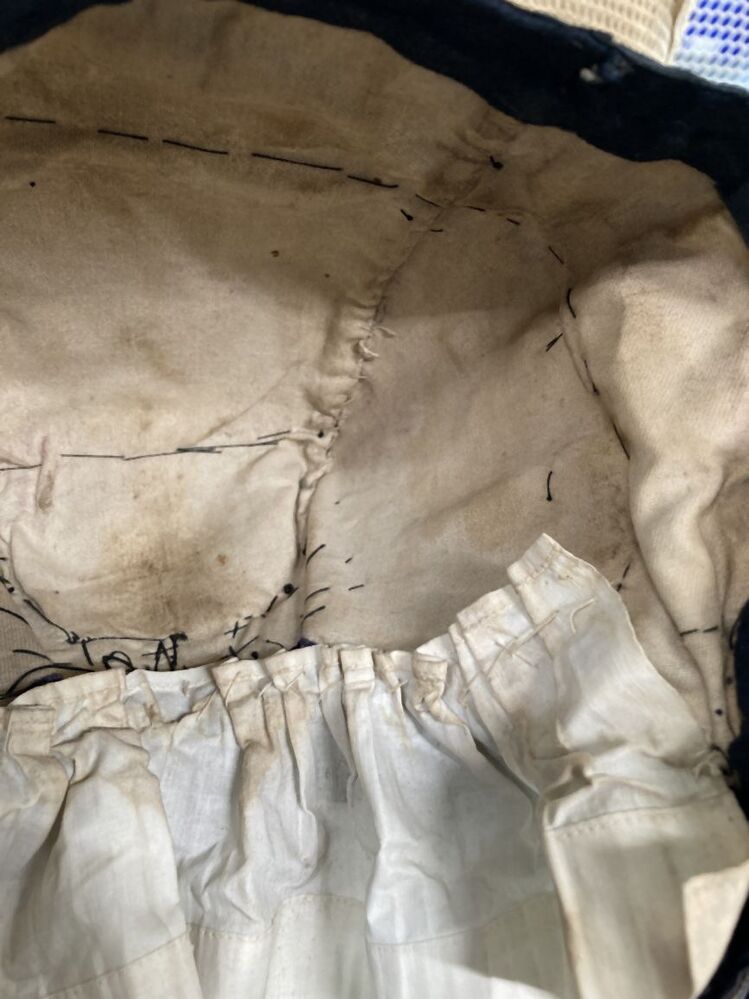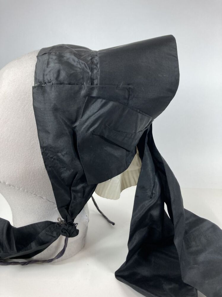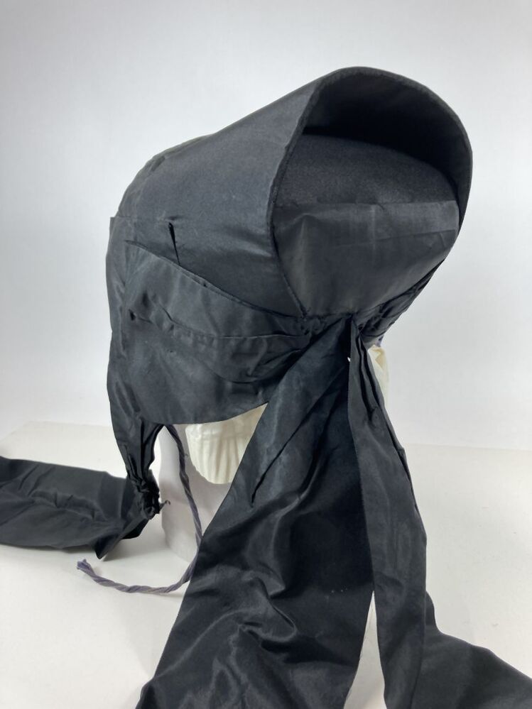 Zwart zijden hoedje met extreem lange linten aan de achterkant