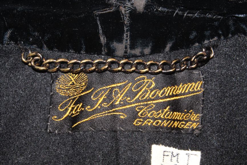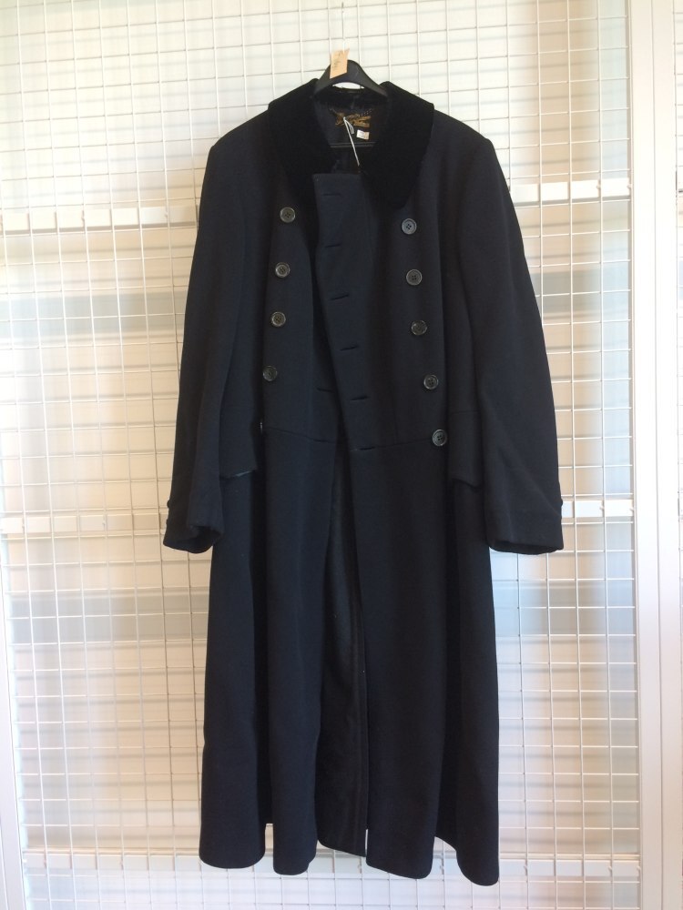 Zwarte zware geklede mannenoverjas van wollen laken met fluwelen kraag