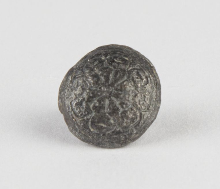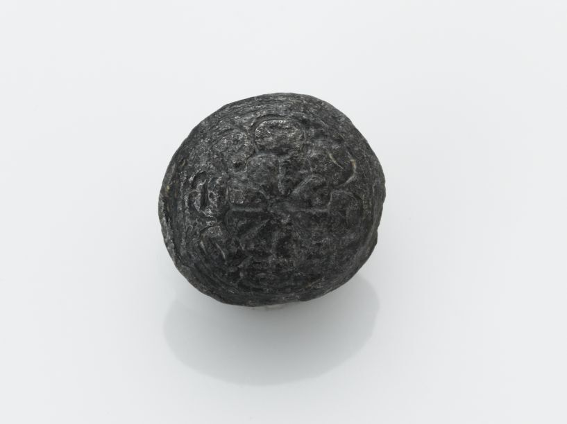 Ronde, bolle knoop met gladde contour en bloempje