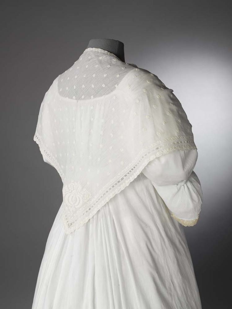 1) hals- of hoofddoek die met een tip (uiteinde) op de rug wordt vastgespeld. https://data.cultureelerfgoed.nl/term/id/cht/00c8692f-af9f-490f-b4ec-ec045b417f30