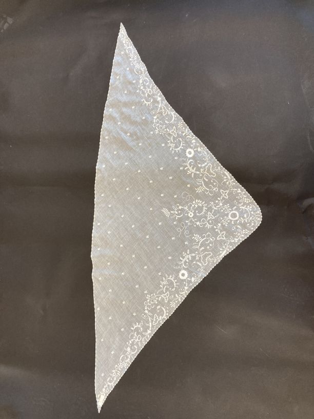 1) hals- of hoofddoek die met een tip (uiteinde) op de rug wordt vastgespeld. https://data.cultureelerfgoed.nl/term/id/cht/00c8692f-af9f-490f-b4ec-ec045b417f30