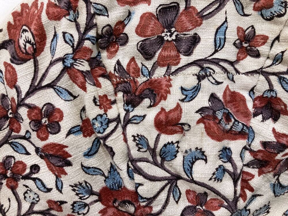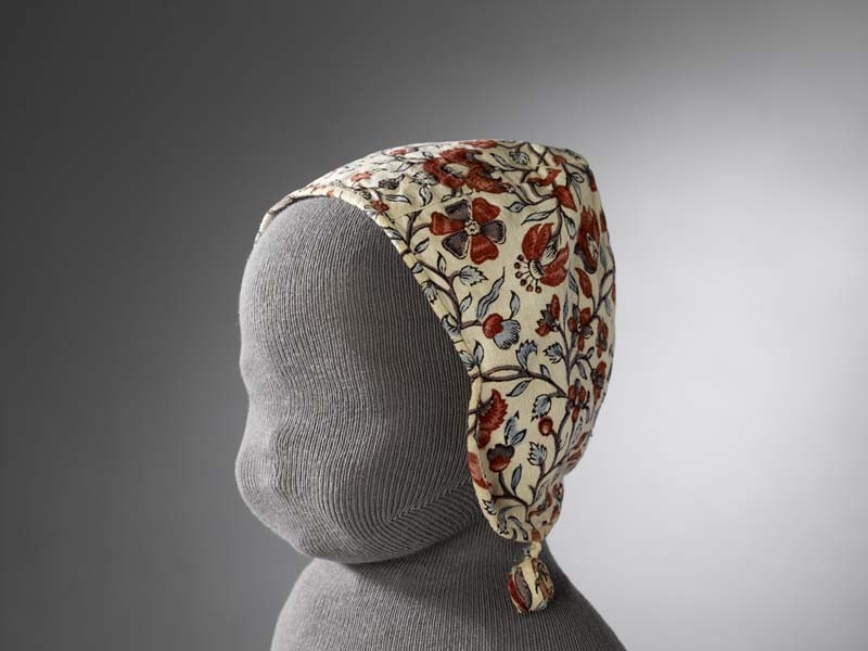 Meisjesmuts, bedrukt katoen met sitspatroon van elkaar kruisende bloemranken op witte grond